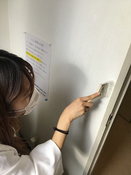 トイレ、洗面所の壁紙をペンキで塗りました。