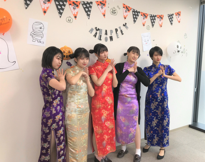新潟キャンパスの女の子たちは友達とおそろいの衣装、メイクを準備する為にいつもより早い電車でキャンパスに来るほど気合が入っていました!