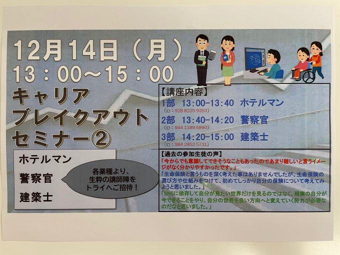 12/14(月) 「第2回 キャリアブレイクアウトセミナー」 13時~15時15分 zoom開催