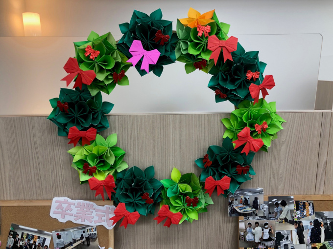 クリスマスに向けてキャンパスを彩るアイテムと言えばクリスマスリースですよね。