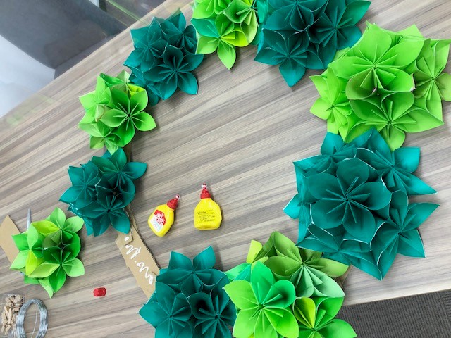 みんな一生懸命色紙を折り折りして完成!!