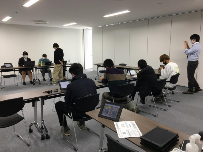 水戸キャンパスでは、広ーい会議室を貸し切って密を避けながらみんなで仲良く参加しましたよ☆
