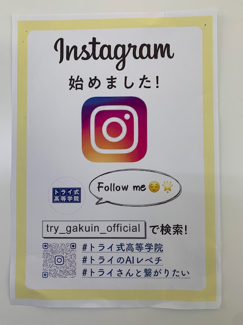 それからこの度、トライ式高等学院 Instagramを開設しました 😀