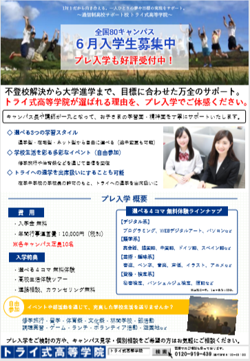 こんにちは 通信制サポート校のトライ式高等学院、丹波橋キャンパスです♪ 今回は耳よりな情報をお届・・・