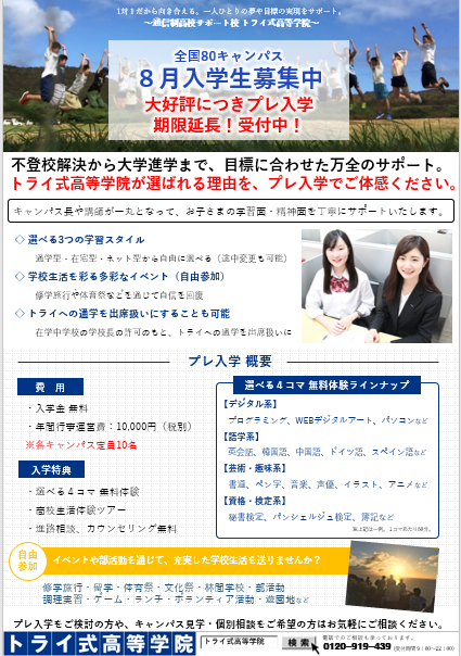 ブログをご覧の皆さま こんにちは! 通信制高校サポート校 トライ式高等学院です。 今日は中3生へのご案内で・・・