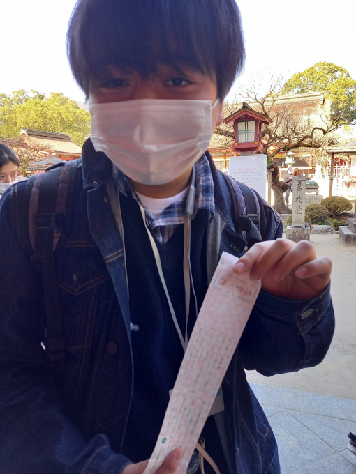吉だったようです。ちょっと残念そうな顔ですが、きっと良いことあるはず!