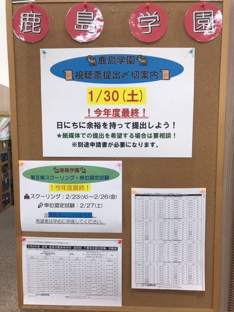 鹿島学園・日本航空高等学校のレポート/視聴票の〆切について
