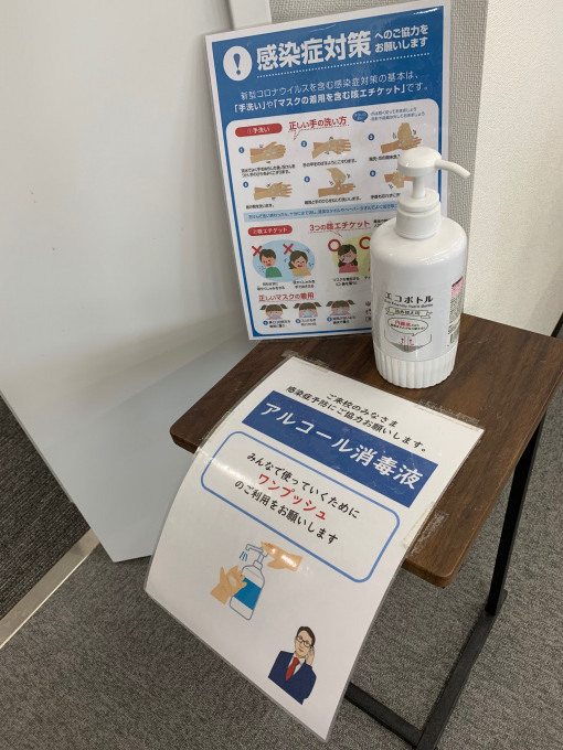 入室時のアルコール消毒と検温の徹底。