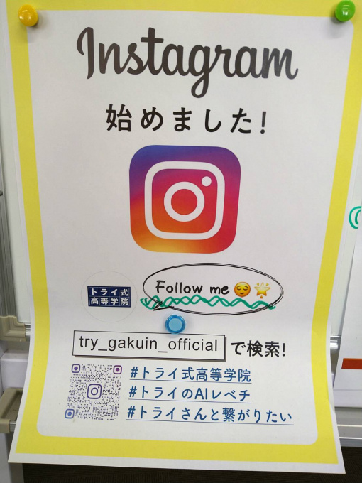 『そ・こ・で』本日は、トライ式高等学院についても知ってもらおうと、インスタグラムの紹介です。
