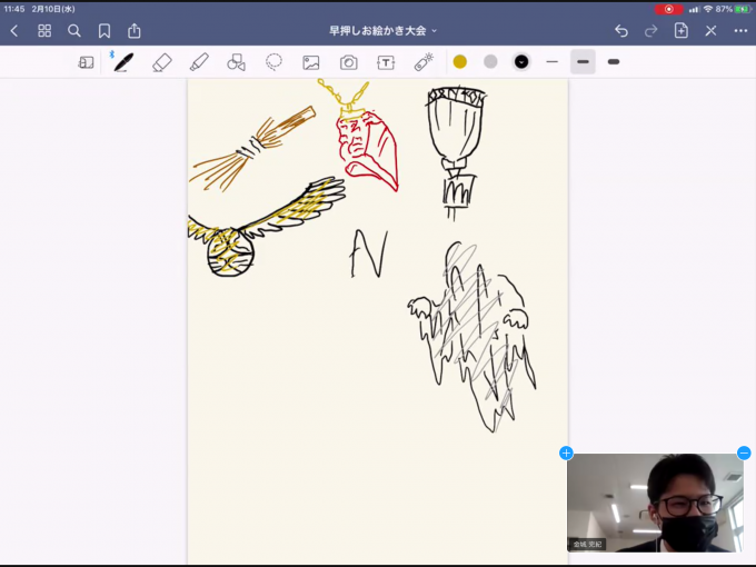 少しずつ完成するイラストの動画を見てテーマが何なのか当てるクイズでした。