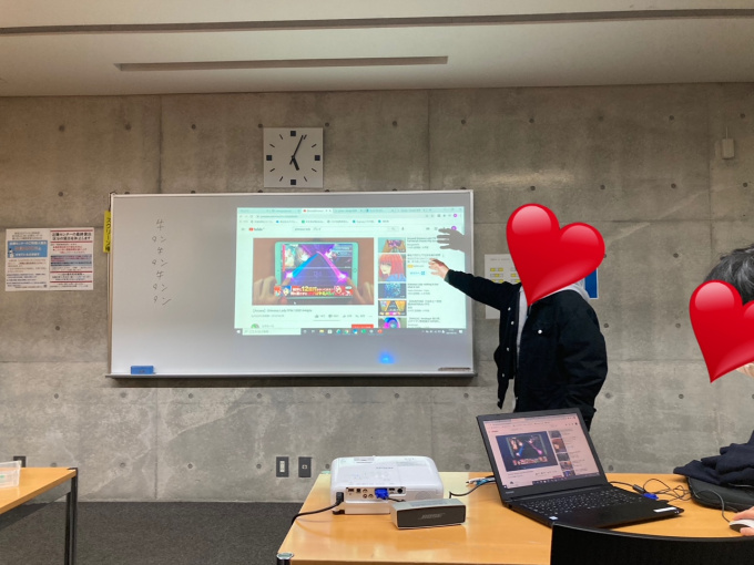 M君は、ボカロの歴史と魅力・本質についてパワポを使って解説。