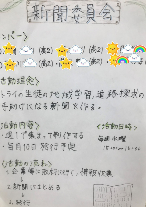 トライ新聞を発行してくれている新聞委員
