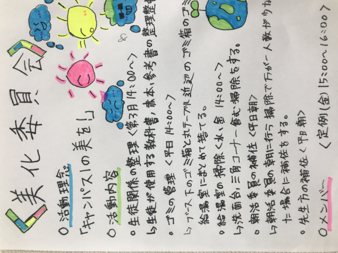 委員会活動を通して高校生活の楽しい思い出や友達を作り、また自分の成長にも繋げてほしいです。