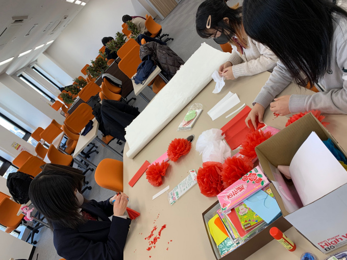 来月6日に行われる卒業証書授与式に向け在校生が掲示物の作成に取り掛かってくれています。