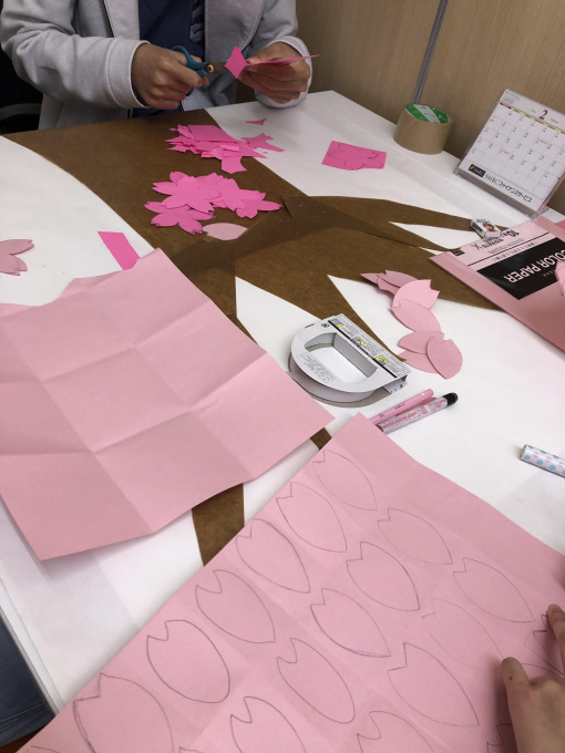 今回は、来たる卒業式にむけて、ペーパーフラワーと、
