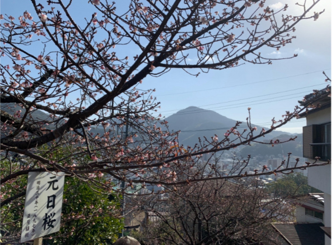 西山神社に咲く元日桜(寒緋桜)