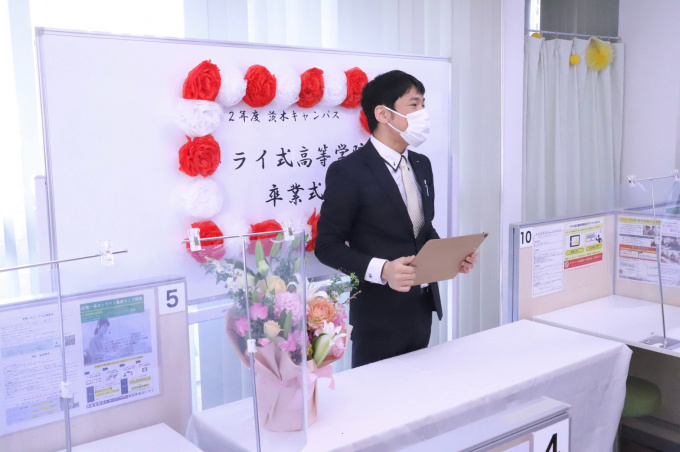 コロナ感染予防のため、参列者は卒業生と保護者1名という制限を設け、マスク着用、アルコール消毒、換気を徹底しました。