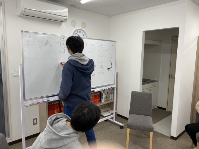 ホワイトボードを使って絵しりとりをしました 😀