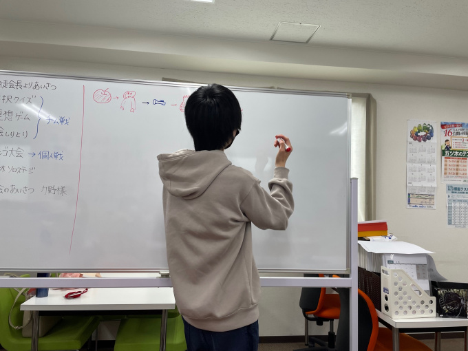 その後は4つのチームにわかれてチーム対抗戦で「クイズ」や「絵しりとり」、「連想ゲーム」を楽しみました。