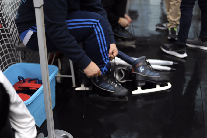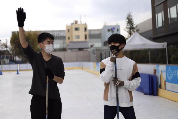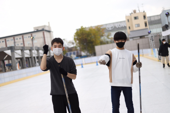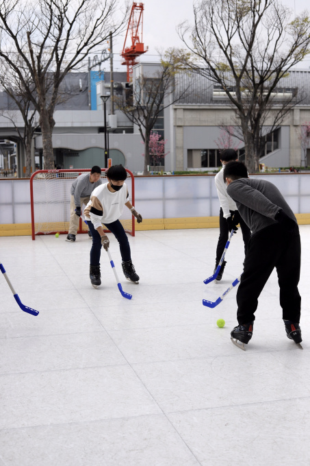 後半はスケート場にアイスホッケーがあったので、チームに分かれて試合開始!!