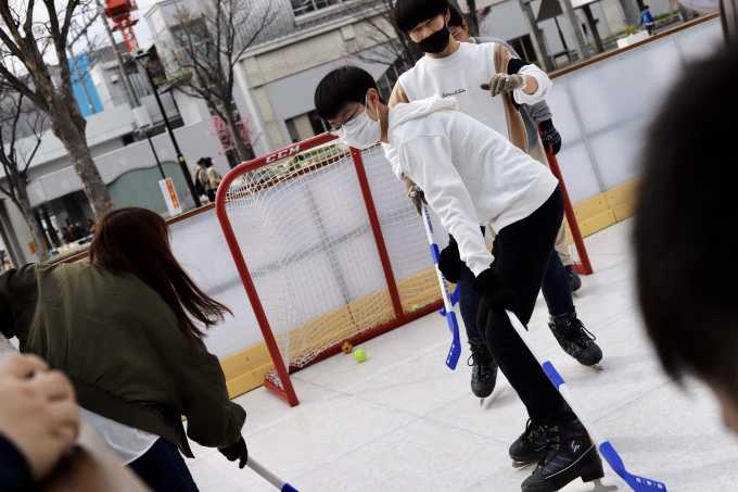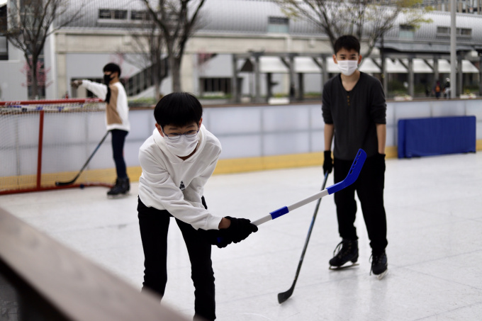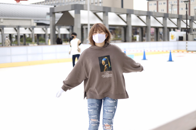 氷よりも安定感があり、転んでも濡れないため、初心者でも挑戦できるアイスリンクだそう!