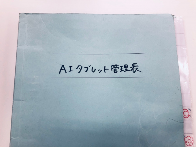 タブレットを利用したい生徒は、このような名簿に日付、自分の名前、使用時間などを書き込んでその日のタブレットを学習を開始します!