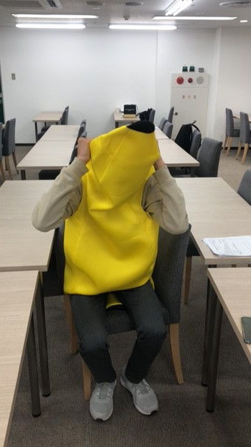 キャンパスでの談笑中に以前のイベントで使用したグッズの話になりそれを引っ張りだしてきてただただ笑ってました。