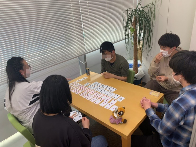 3年生が新入学生を誘って、授業の合間にトランプしたり♪♪