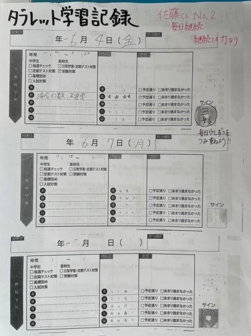 さらにSくんはどのくらい自分が進んでいるのかもっと細かく管理をしているようです。