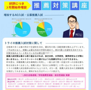 昨今の大学入試では「推薦入試」の割合が半分以上まで増えてきています。