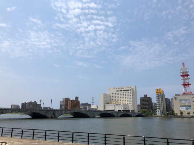 外へ出て新潟の梅雨の晴れ間の青空を