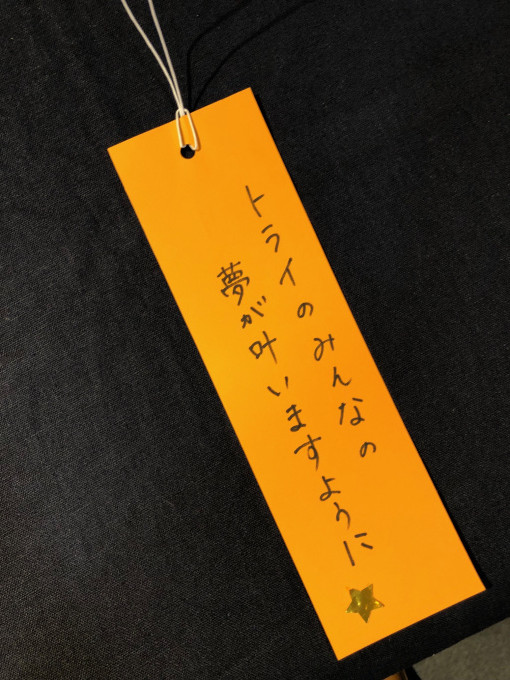この笹飾りには、たくさんの方の願い事が飾ってありました。
