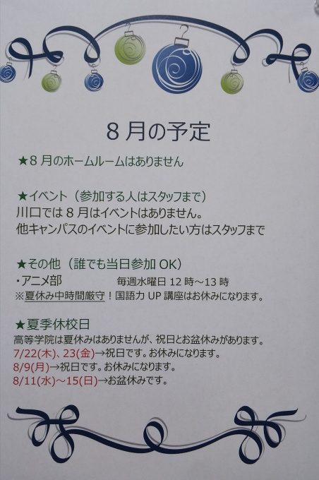 8/9と8/11~15はお休みになりますのでご注意ください。
