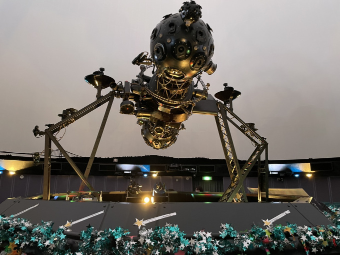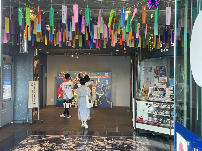 ブラックホールの構造を体感できるコーナーで遊んだり