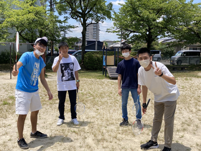 今回は佐賀キャンパス近くにある小さな公園で、バドミントンをしました。
