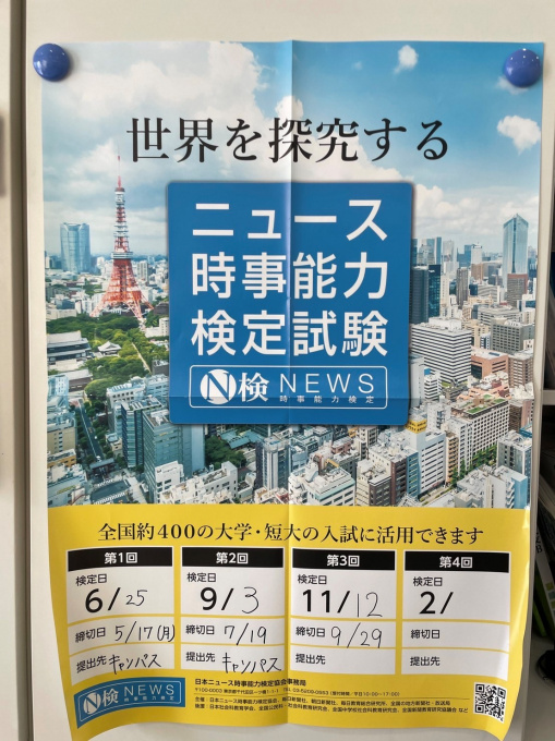 N検は公民や地理歴史の学習と深い関係にあり、新聞やテレビの報道に目を向けるきっかけにもなります。このため受検だけでなく、公民、地理歴史などの学習を現実社会と関連づけて深める目的で、N検や公式教材は多くの学校で利用されています。大学の入学前・初年次教育などでも活用されています。