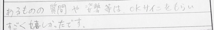 このレポートは、3日目終了時のものですが、日が経つにつれて、ポジティブになり、実力をつけていることも分かります。