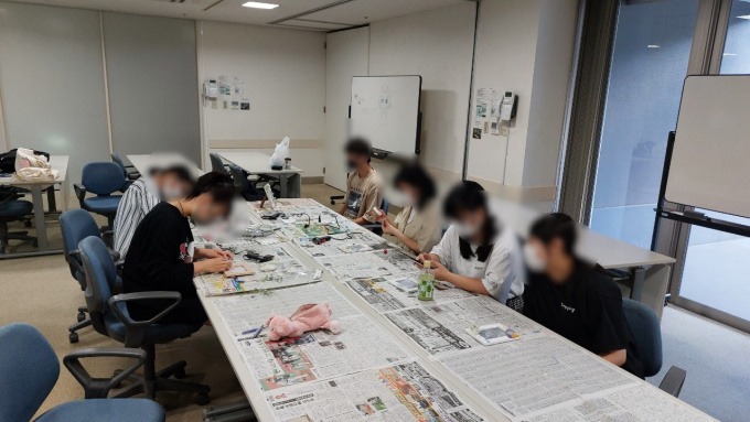 知立キャンパスでは レジンやスヌード・リース作りなどいろいろな 作り物をしていきますいので