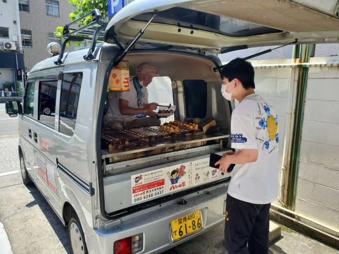 たこ焼き屋さんでテイクアウトしてお昼を食べる生徒もいました。
