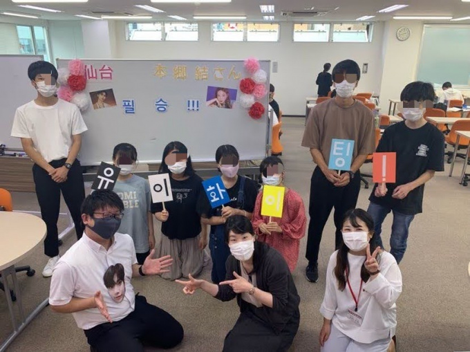 決勝当日、LIVE中継で仙台キャンパスからYさんを応援\(^o^)/