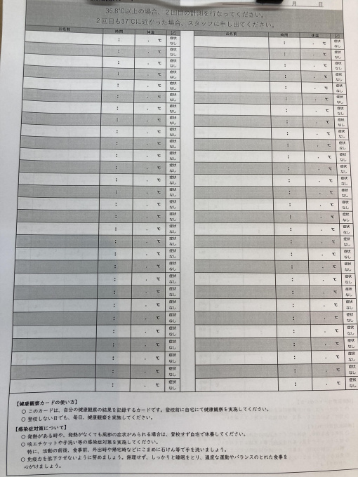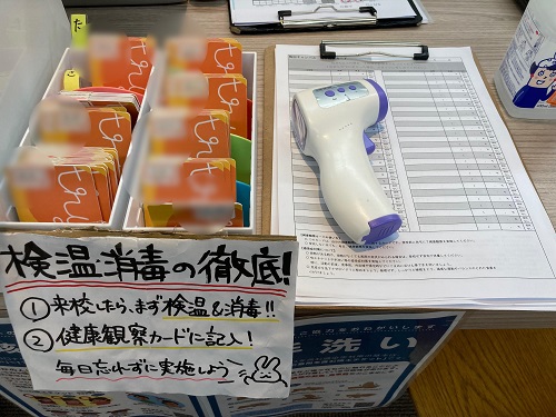 毎日の検温を生徒・講師に徹底し、記入してもらっています!