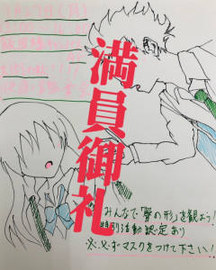 本日は、『聲の形』が定員に達しましたのお知らせです(/ω\)