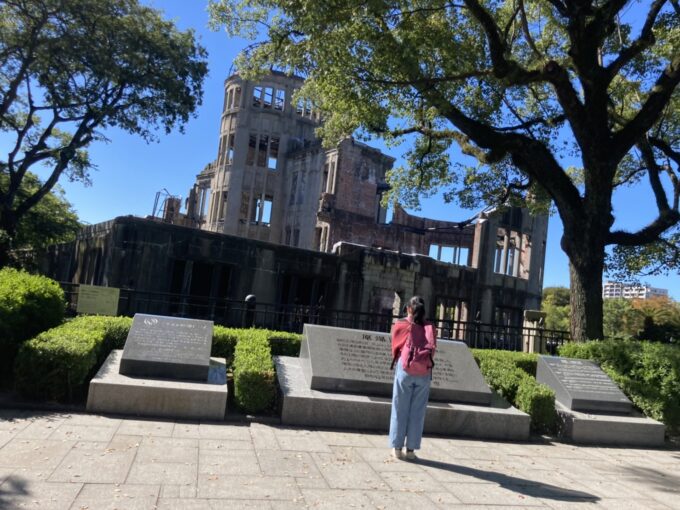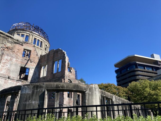 青空と原爆ドーム、そして2016年にオープンした綺麗なビル(おりづるタワー)の対比が、何とも言えない気持ちになりました。