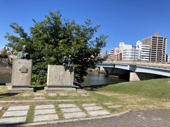雲一つない、秋とは思えない日差しの中、まずは原爆ドームや相生橋付近の石碑を探してみることにしました。