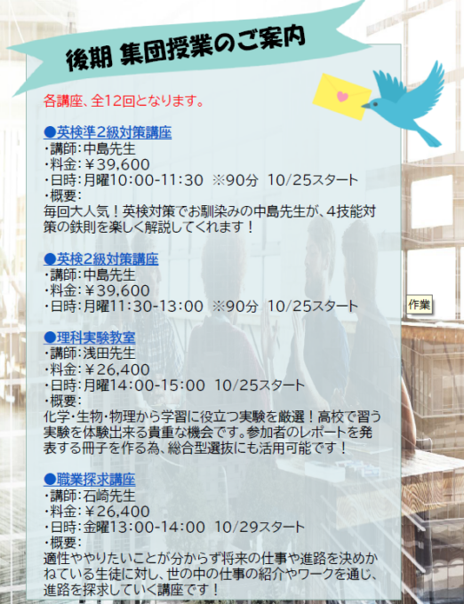 ・10/25(月)集団授業スタート!