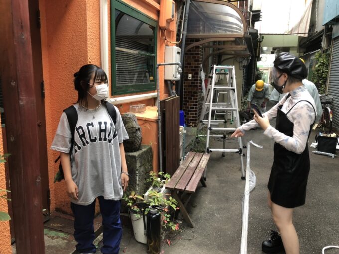 アオッサはノスタルジックな雰囲気の商店街で撮影しました。