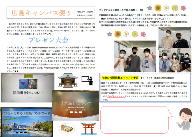 広島キャンパス便り10月号を発行いたしました!