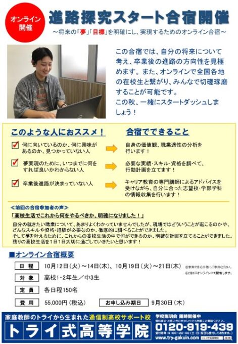 皆さん こんにちは! ブログをご覧いただきましてありがとうございます。 通信制高校サポート校トライ式高等学・・・