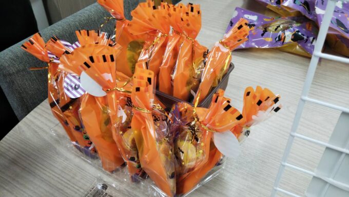 コロナ対策で、お菓子は個別に丁寧にラッピング★
