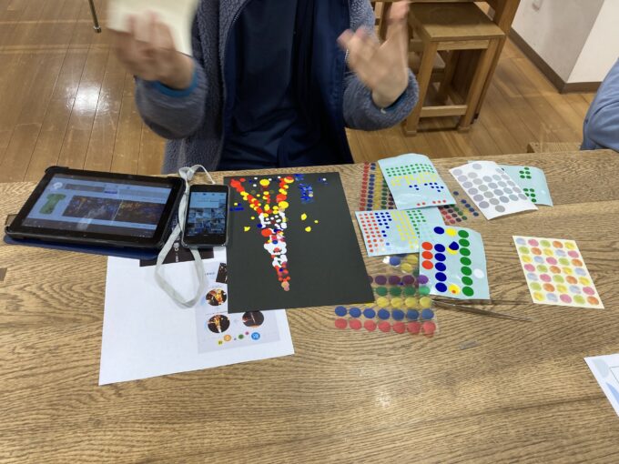 全員で丸シールアート作りにチャレンジしました!!